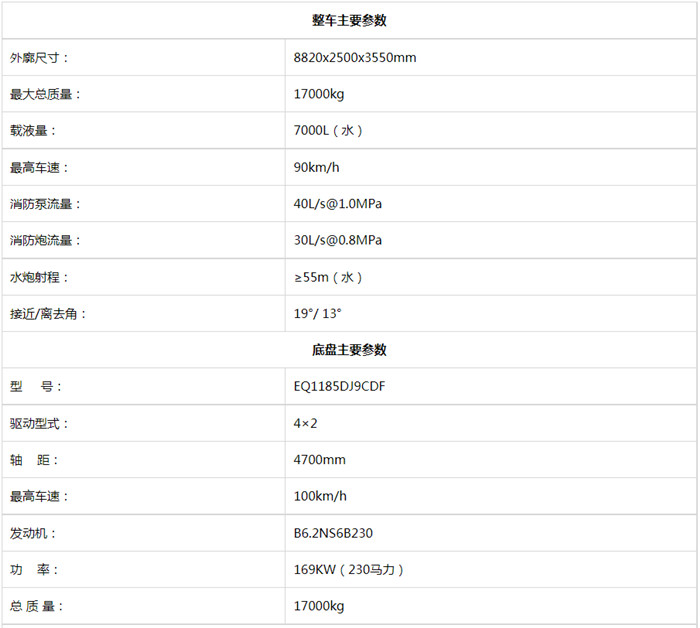 一、東風7噸消防車參數圖片