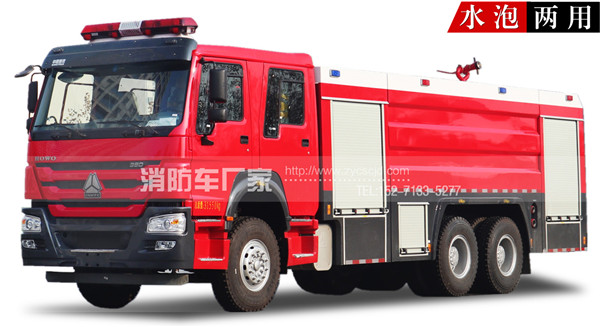泡沫消防車(chē)與水罐消防車(chē)結(jié)構(gòu)相似,除相同部分外,泡沫消防車(chē)主要增添了泡沫液罐、泡沫比例混合裝置、空氣泡沫一水兩用炮及其它附加裝置等。