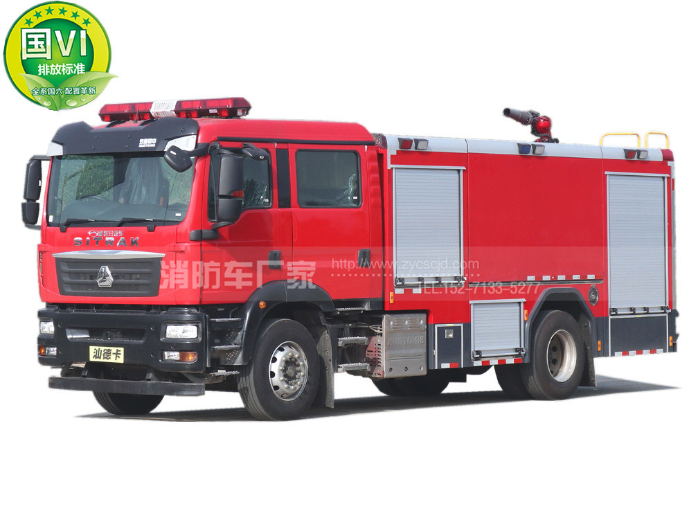 國六重汽汕德卡8噸水罐消防車,在重汽汕德卡原裝二類底盤上改裝而成,載液量8立方,配置CB10/60型消防泵,PS50型消防炮,隨車配備常用消防器材,具有動力強勁,機動性好,操作方便,射程遠的特點,適用于消防隊,專職隊,社區、街道、村鎮、工業園、校園、企業,風景區,博物館等場所。